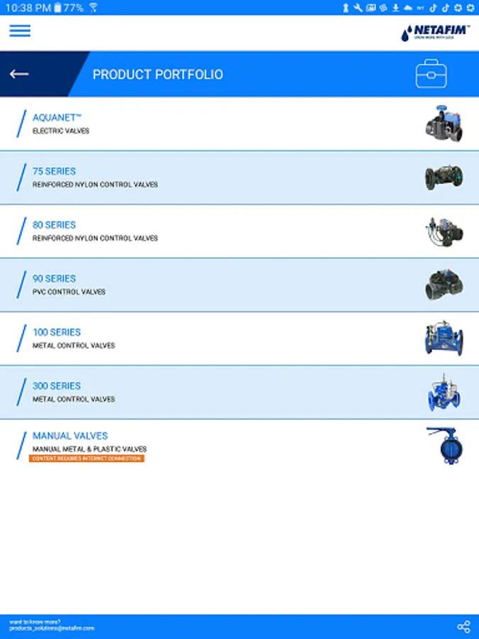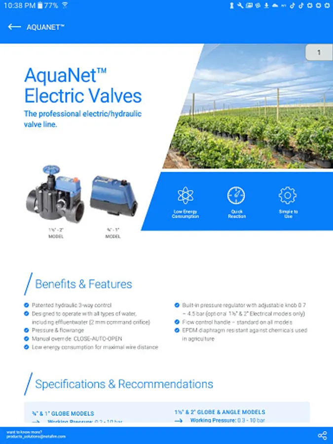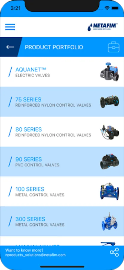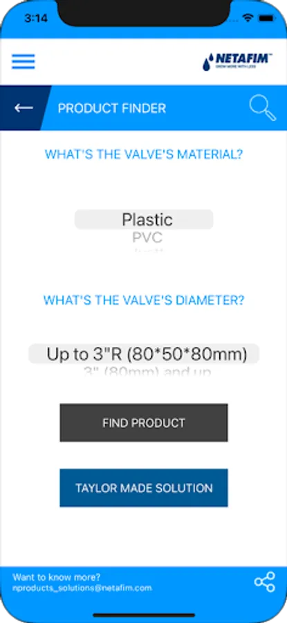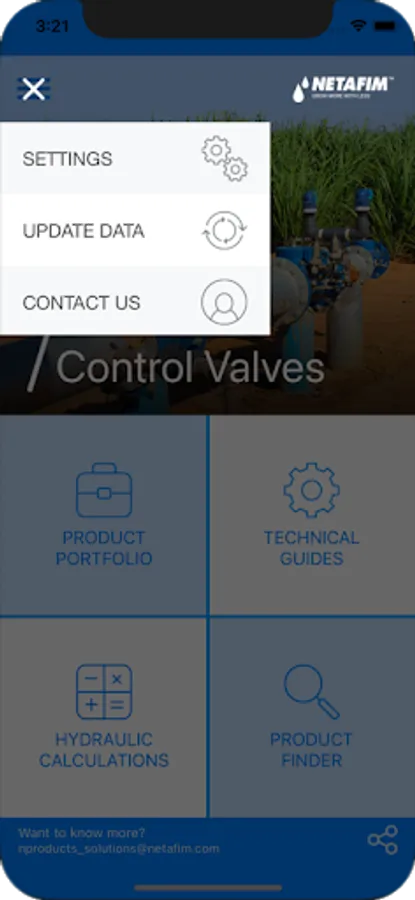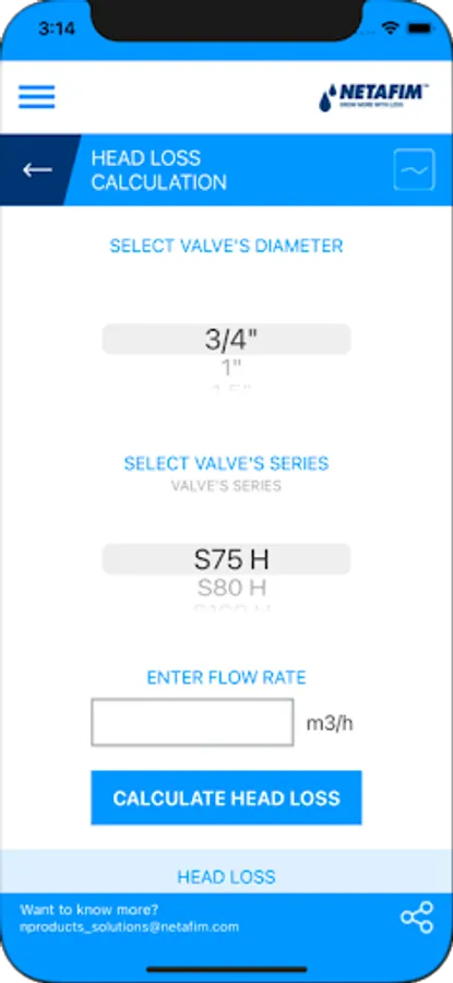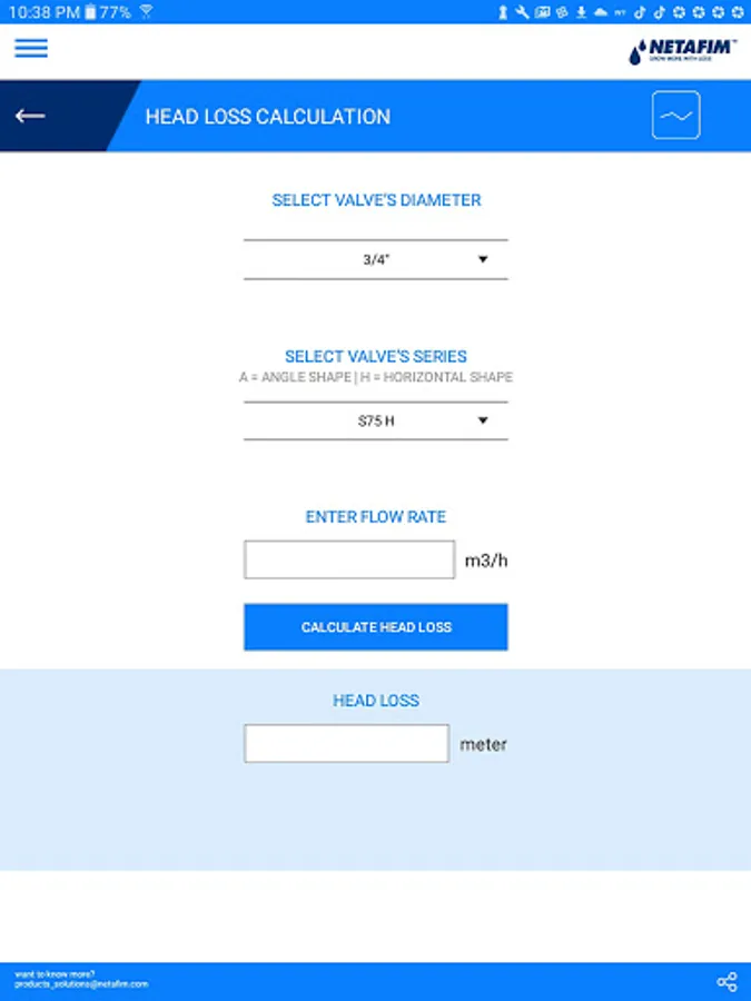 NetafimTM offers a friendly user tool for the correct selection, installation and maintenance of valves in the irrigation system. The tool is addressing the needs of designers, dealers and growers by enabling the user to: