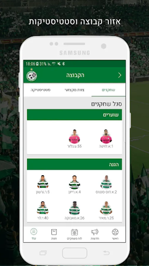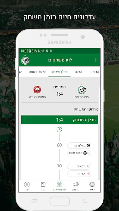 The new official app of the Maccabi Haifa football club, available for download from various app stores.