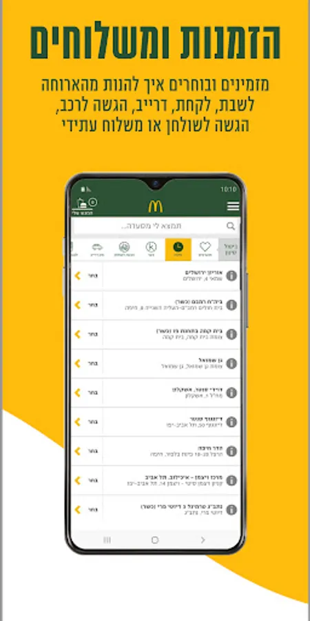 בדרך מטיול בצפון? מחפשים מסעדת מקדונלד'ס קרובה? באפליקציה ניתן לראות את כל המסעדות על-פי הקרבה אליכם, ולבחור את המסעדה באמצעות מגוון מאפיינים כמו: מסעדות שפתוחות עכשיו, כשרות, הגשה לשולחן, משחקייה, נגישות ועוד. ניתן לצפות בפרטים המלאים של המסעדה, כולל שעות פתיחה ומפת הגעה, ולנווט אל המסעדה בלחיצת כפתור. סעו בזהירות :)