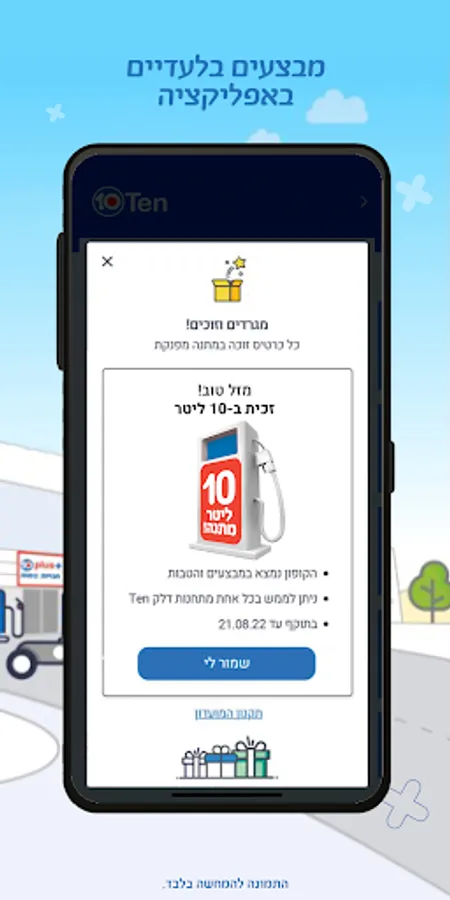 So what are you waiting for? Download Ten's unique refueling app today and start enjoying views and benefits regarding the fuel prices you pay, and discounts and promotions on purchasing products at Ten gas stations.