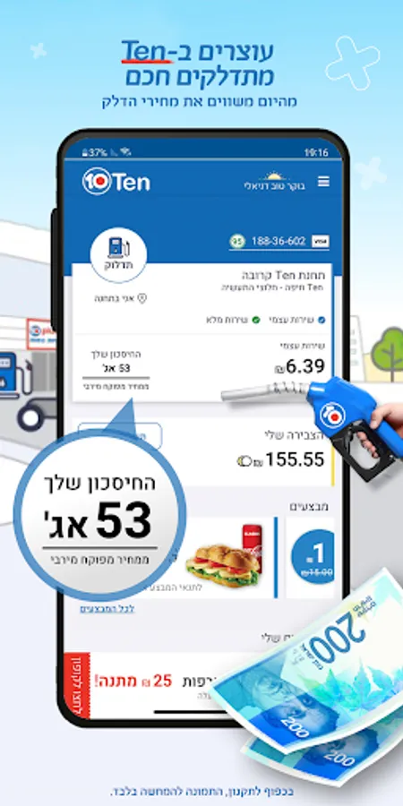 The Ten refueling app, understands well how accurate the phrase "time is worth money" and how much time savings can save you money as well. This is why it is important to us that at every refueling you not only enjoy the benefits at Ten's convenience store and be the first to hear and enjoy discounts and fuel promotions, but you will also gain full transparency regarding the fuel prices you are about to pay, as you deserve.