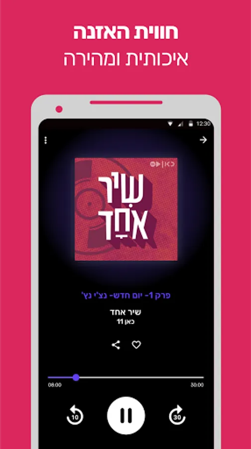Hotcast app lets you choose from the most popular Hebrew & Israeli podcasts with many episodes, update daily. You can easily find and manage your favorites podcasts in one tap, with instant playback and premium quality. a lot of features to make your audio listening experience extremely smooth and convenient: Enjoy learning, inspiration, and stories through podcast listening.
