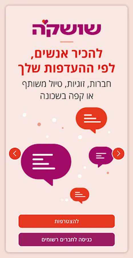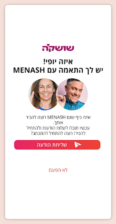 The need for love and social relationships is shared by all of us and is very important even in the third age. Shushka, Mutka's new dating app, gives the proper emphasis and place to dating at this age and enables, through a friendly and convenient technological interface, diverse ways to create romantic acquaintances alongside new social relationships for friendship, companionship or shared entertainment.