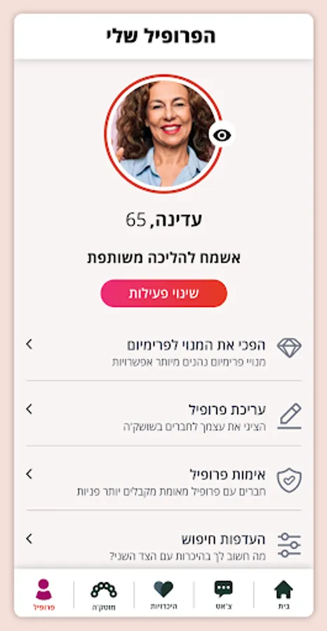 Our app is designed for people over 60. In Shoshaka, you can create an inviting and rich profile that will allow you to meet the people who suit you best, according to a diverse and easy-to-update list of characteristics.