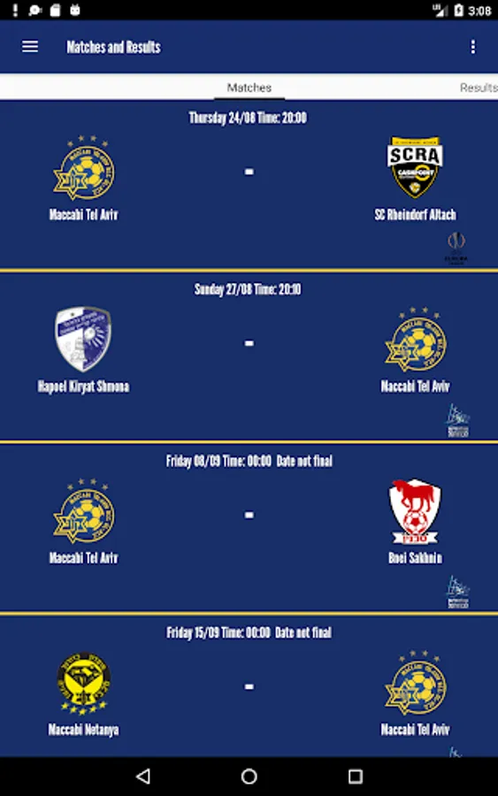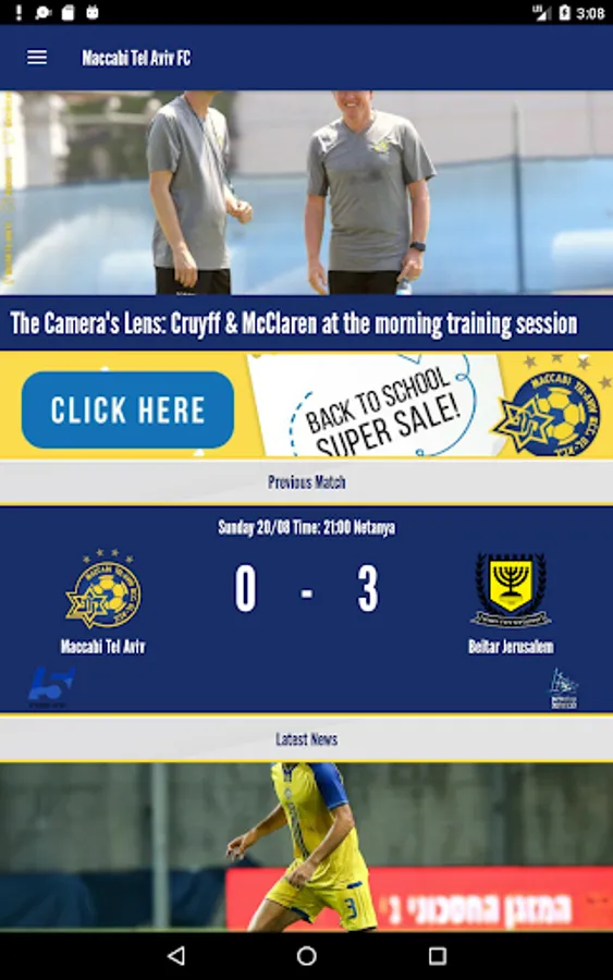 Have Maccabi Tel Aviv at your fingertips with the official Maccabi Tel Aviv App where you can find all of the up-to-the minute updates as to what's happening at the club. You'll also enjoy LIVE match updates, accompany the team 24/7 through the Champions League, match stats along with player statistics, league table, picture gallery and other exciting and exclusive content for fans of the club. Who knows maybe we'll find you on the App as well!