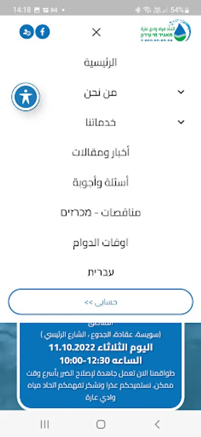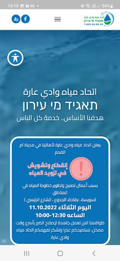 This is the first version of the application of water and Wadi Ara to water and sanitation union to facilitate communication with the water Union process and receive union services at the highest level and as quickly as possible to consumers councils and municipalities that fall under the Union's influence (Umm el-Fahm, sorties Ara, Arara, Kafr Qara, Basma, Baka, Jet and villages Zimmer).