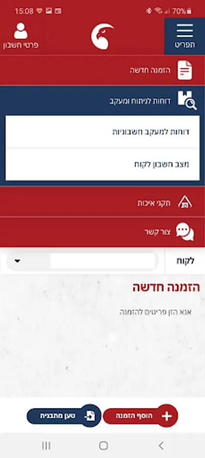 We are proud to present the Nesher application that allows you to place and track orders, view invoices and a variety of other advanced tools and options from anywhere and at any time via mobile.