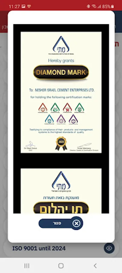 The cement production process and the strict quality control at Nesher are carried out subject to the strictest standards in Israel and the world and under the supervision of the Israeli Standards Institute. The Nesher company is proud to hold a diamond award awarded to companies that hold at least 7 quality and excellence marks that demonstrate the conformity of management systems, processes and products to Israeli and international standards.
