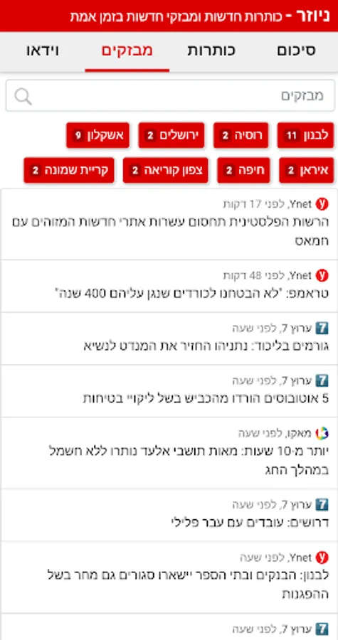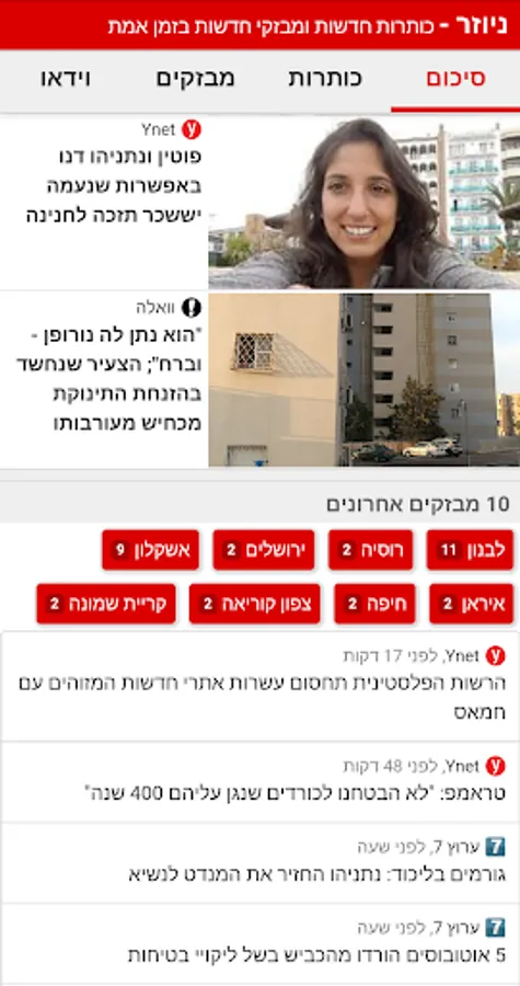 Flashes include: Ynet, Walla, 0404, Mako, Channel 7, Haaretz, Israel Today, Maariv and more ...