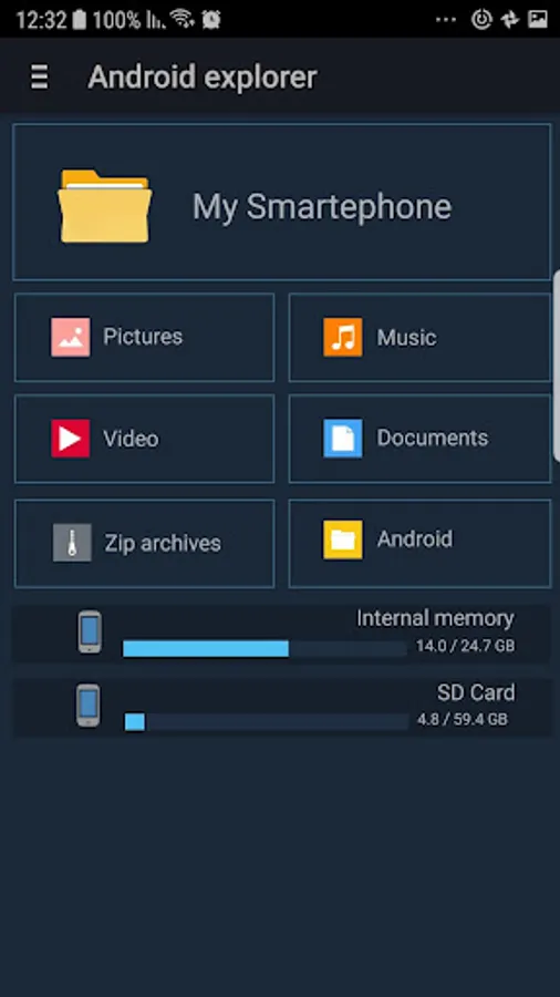 Search for a file, create folders, and long-click the file to save a file as a name, create a zip archive, copy a file, cut a file, paste a file, and delete a file.