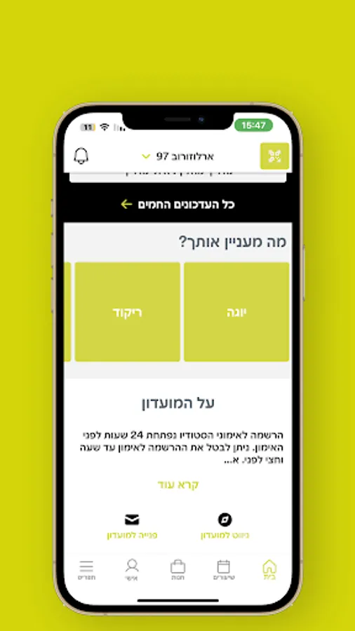מהיום כל הקשר עם מועדון הספורט והסטודיו שלך אצלך בטלפון החכם!