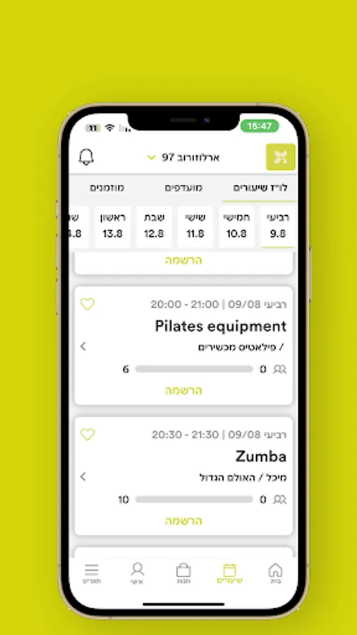 כל מה שצריך לרישום מראש לשעורי סטודיו, עיצוב, ספינינג, פילאטיס, מחול ועוד.