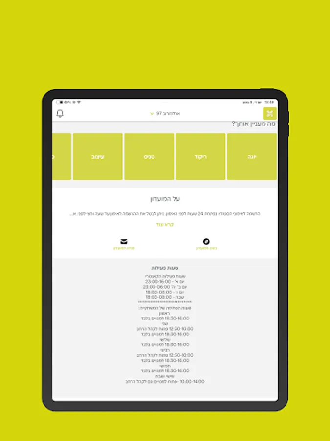 הרשמה לשעורים, תזכורות לאימונים ביומן, מצב המנוי, בקשה להקפאת המנוי, כתיבת פניה ישירה למועדון.