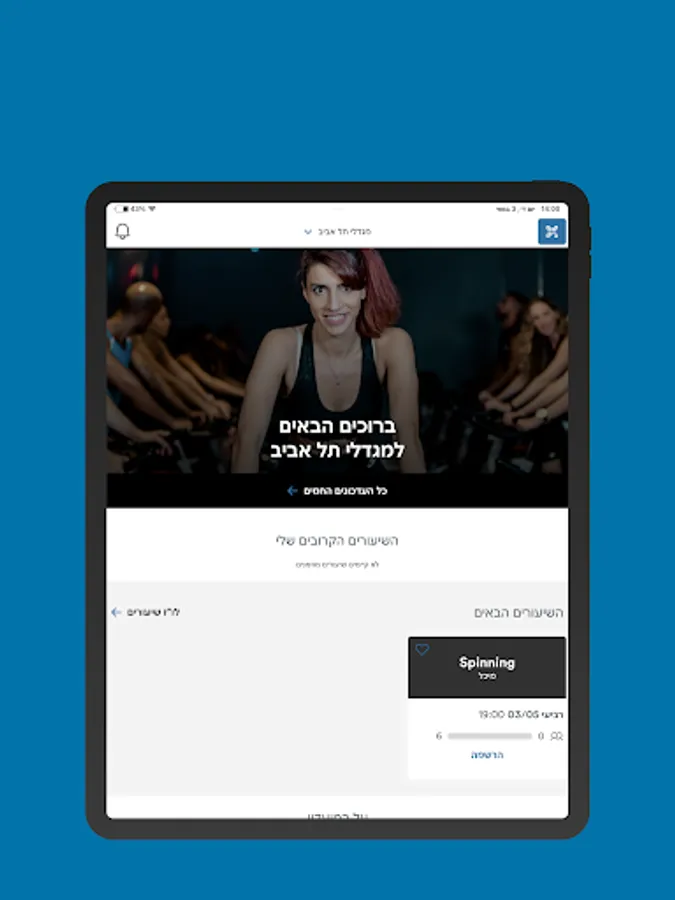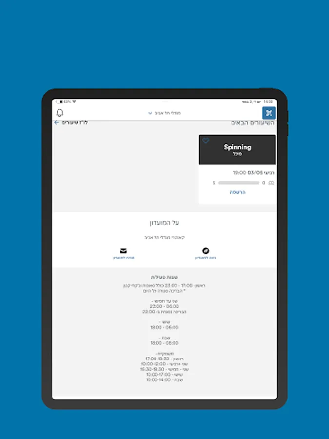 The application allows registration of TRX and spinning lessons, ordering squash courts, in addition to keeping up to date on the current news and watching the updated lesson system at all times, including updates on changes, 90 minute updates, marking and receiving regular updates, personal diary reminders, The various country events - lectures and performances, sports and fitness, sing-along evenings, community events, children's activities and more. You can also receive reminders for diary training, subscription status, request for a subscription freeze, writing a direct call to the country secretariat and more.