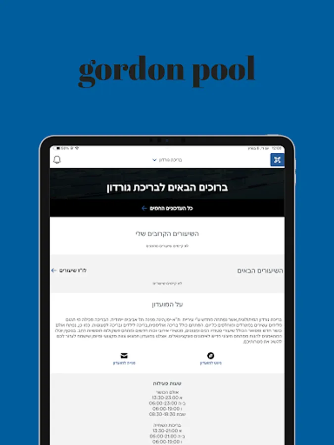 Today there is no need for a receptionist, you can manage your daily workout through the application of Gordon Pool.