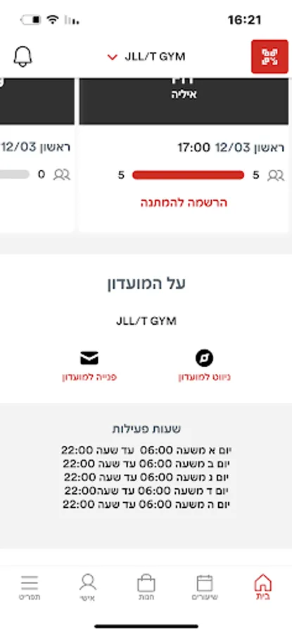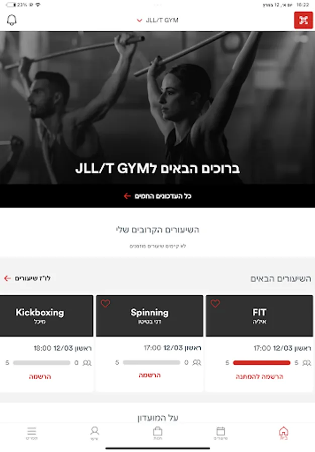 The exclusive app for use in the gym for JLL Technologies Israel employees.