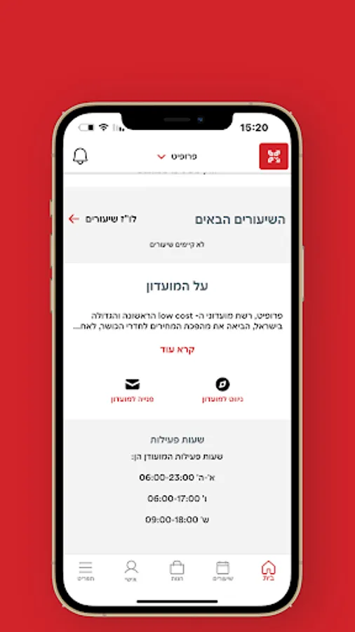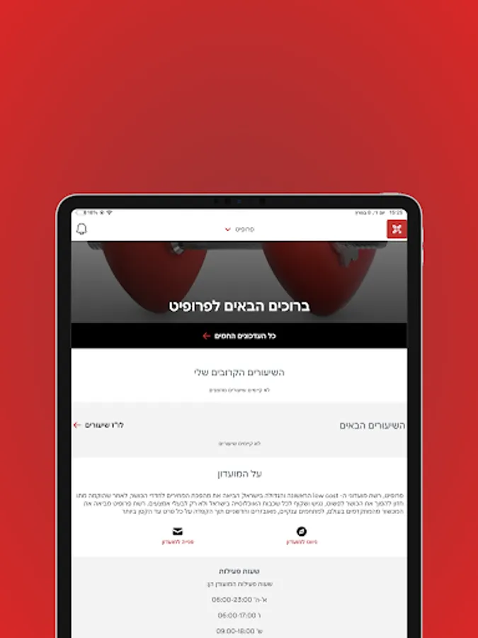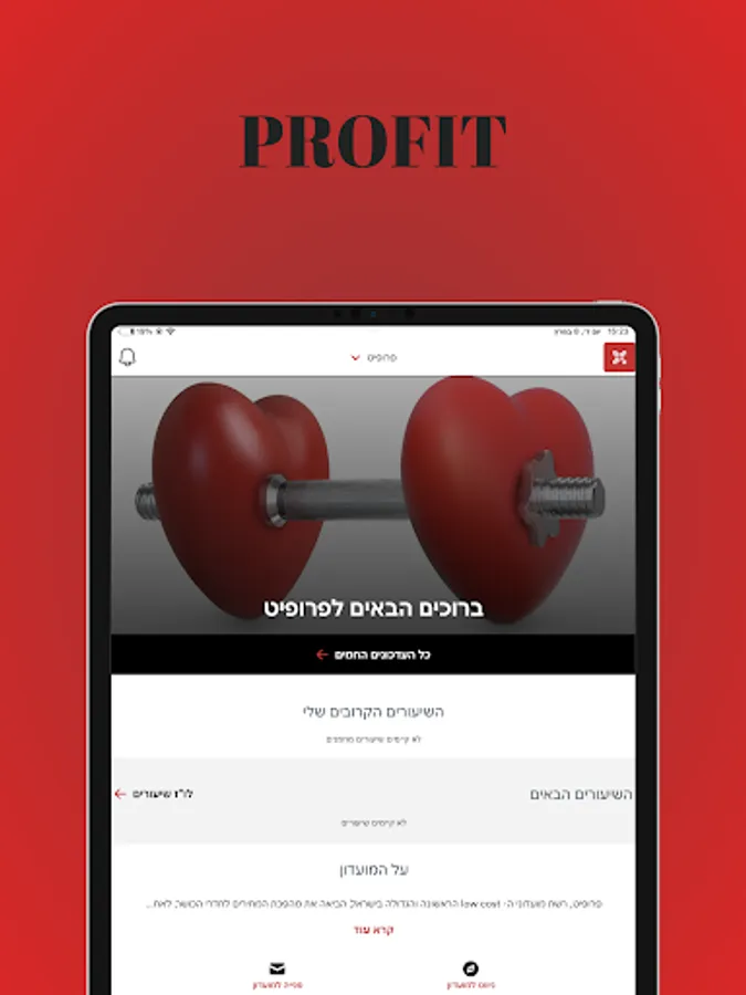 Profit - Network gyms Israel's largest low-cost, bringing the Revolution and the service also lets you perform all the actions you need to enjoy your fitness subscription: Sign studio lessons, presenting lessons according to a preferred guide, a reminder for training, navigation club, presenting special offers reminders to training log, clear the subscription mode, a motion to freeze subscription, direct written her club, private viewing guides, presenting special offers, announcements of the club and update changes to the system, updating different events and much more ...