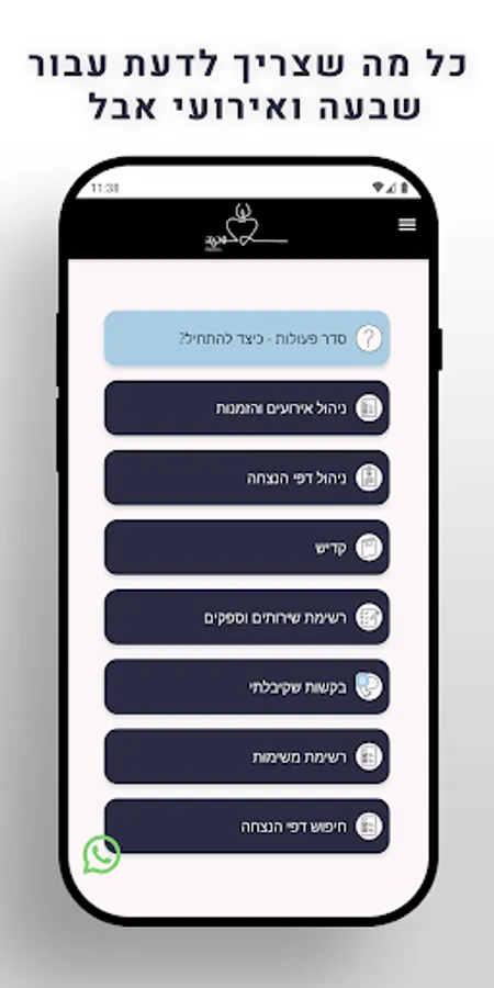 The app provides extensive information for mourning events including funerals, shiva, memorial services and other commemorative events. Along with the information, you can create events, invite participants and more. The app helps organize mourning events and in addition, allows the opening and distribution of memorial pages for the deceased.