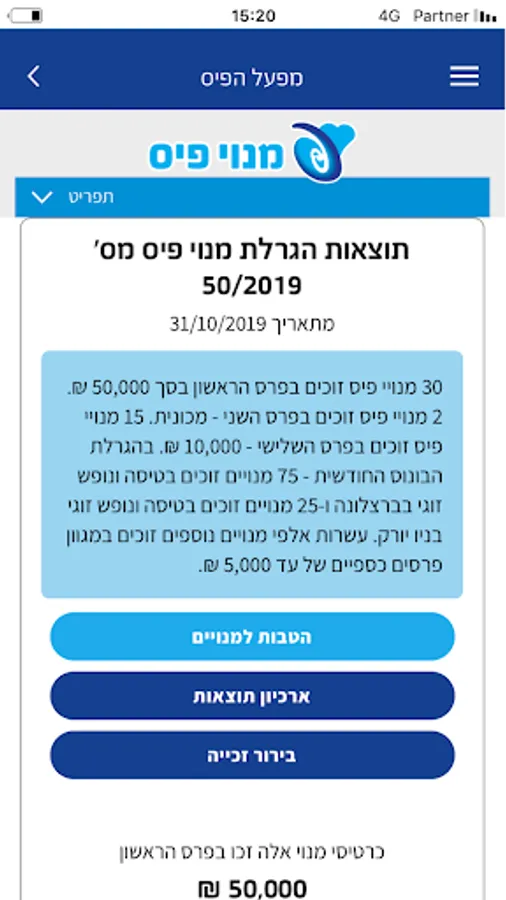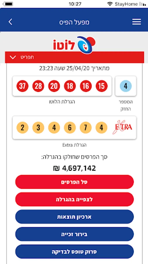 The Lottery reaches you directly on your smartphone with a unique applet that will provide you with all the various Lottery Lottery results, including: Lottery, Chance, Lottery 777, 123, Lottery Subscription and all the Hashag cards available for purchase at points of sale.