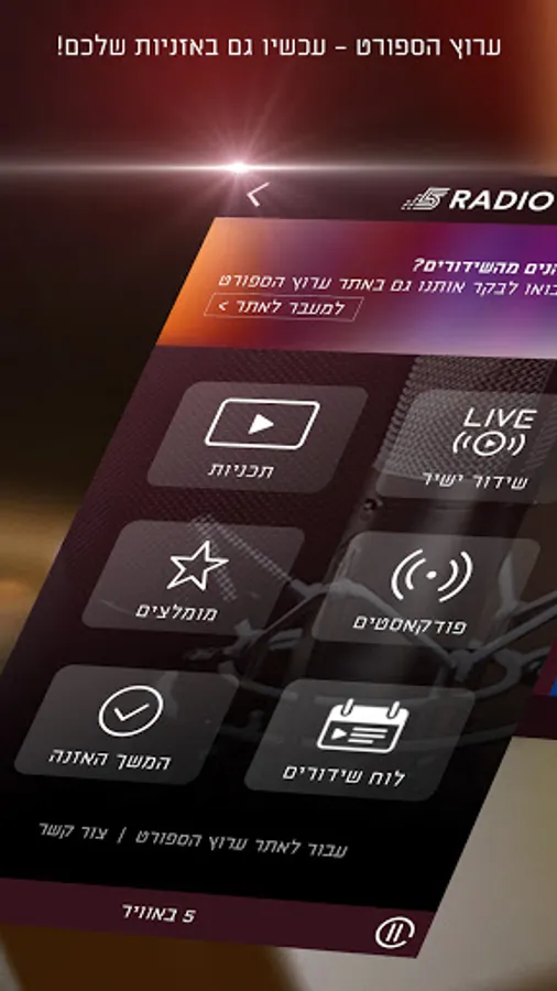 5RADIO brought to you by the THE SPORTS CHANNEL offers a variety of live broadcasts and listening content anytime, anywhere: