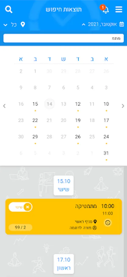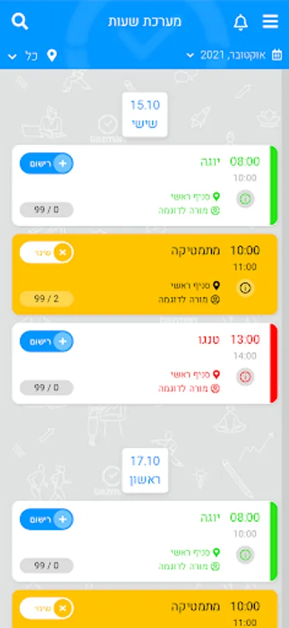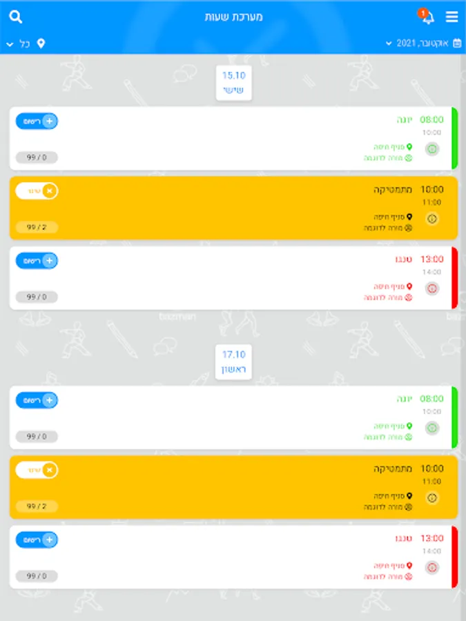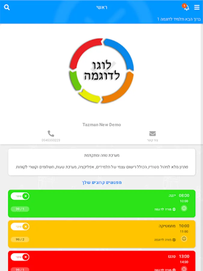אפליקציה מעניקה ללקוחות שרות זמין, נוח ונגיש מכל מקום להרשמה לשיעורים, מפגש, חוגים וקורסים בצורה חדשנית, נוחה ופשוטה לתפעול.