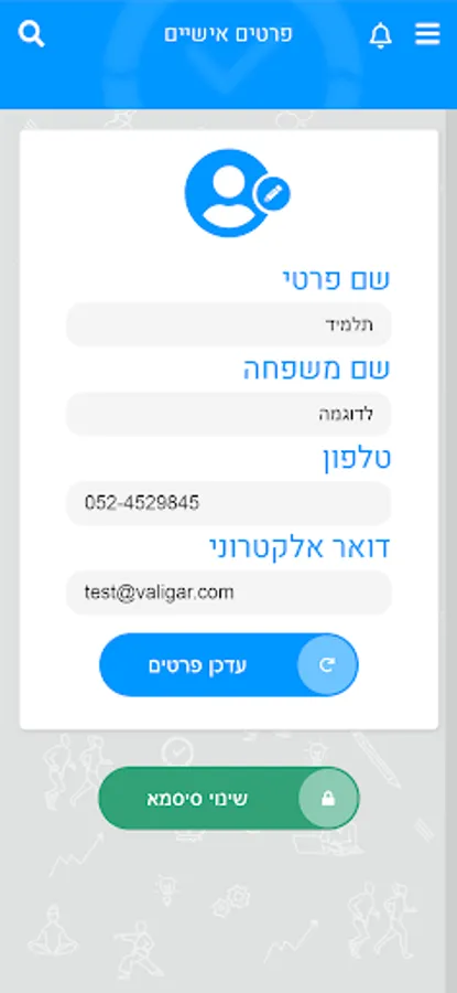 קבלת עדכונים מסטודיו ועדכון פרטים במידת הצורך.