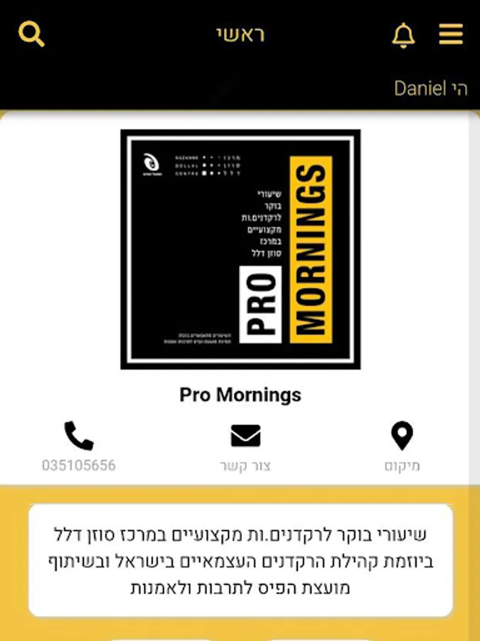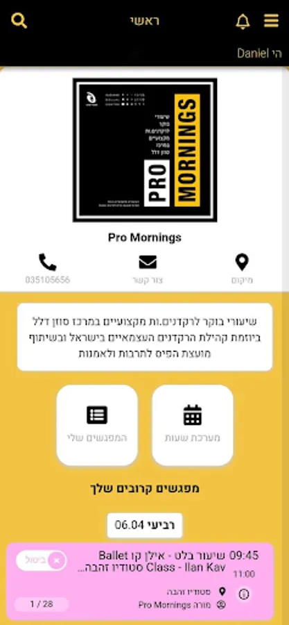 אפליקציה Pro Mornings מעניקה ללקוחות שרות זמין, נוח ונגיש מכל מקום להרשמה מפגשים וקבלת עדכונים מסטודיו