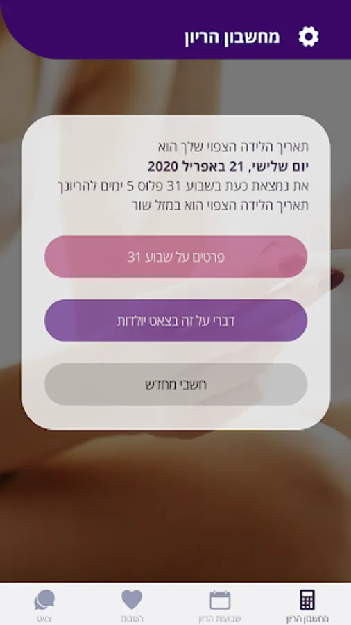 Also the calculator will display the week it is and depending on the information about the current pregnancy week.