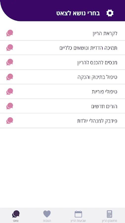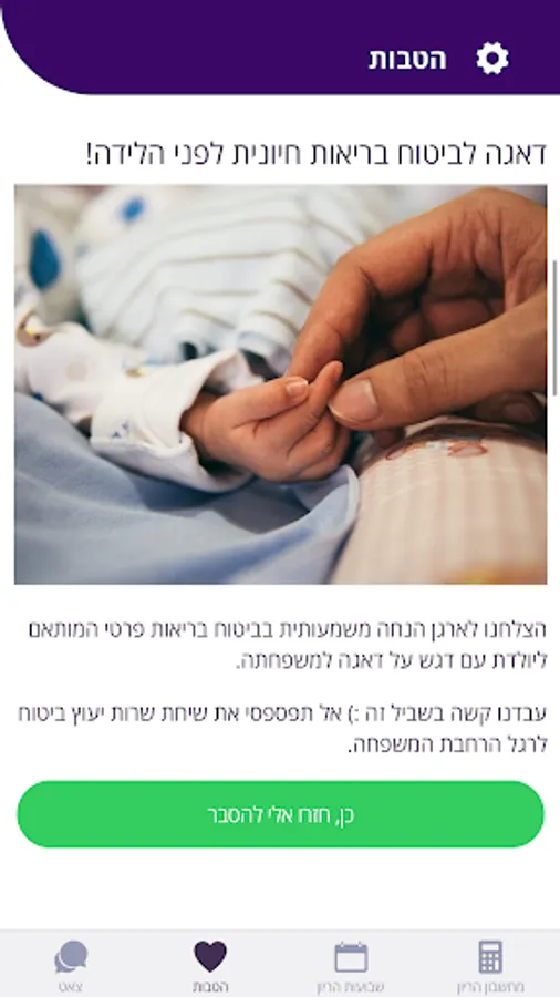 App, there is an active community taking place in Forum Chat deal with all areas and stages of pregnancy, to meet him (trying to get pregnant, infertility treatment), during (mutual support, nutrition, prenatal classes), followed by (breastfeeding, development of the newborn, new parents), and in many areas , where you can consult, discuss and share issues that accompany us around pregnancy.