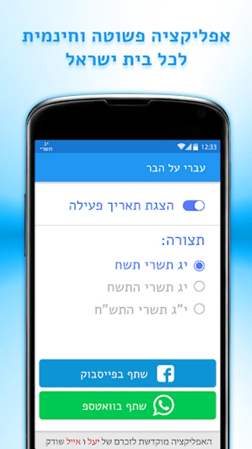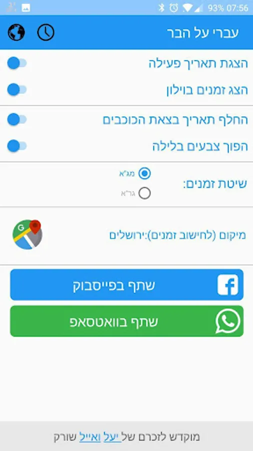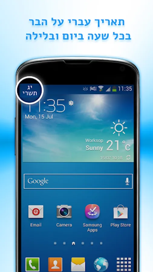 An app that displays a small icon of the Hebrew date in the corner of the screen on your device, next to the clock and battery indications.