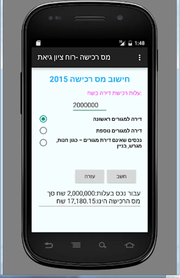 Real estate purchase tax calculation in Israel in 2015 by a CPA score Giat