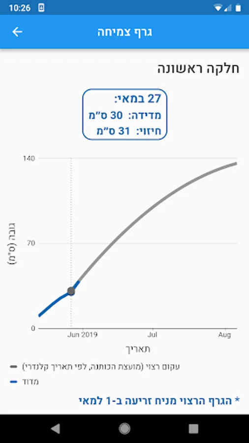 בנוסף, האפליקציה מאפשרת לבצע בקרת השקיה על ידי השוואה של מדידות גובה שמודד ומכניס החקלאי אל מול עקומי גובה רצויים.