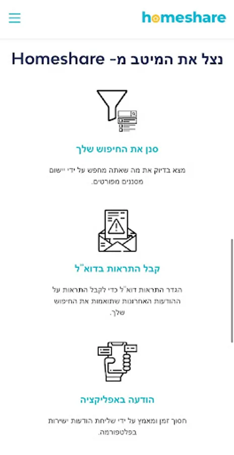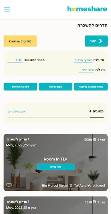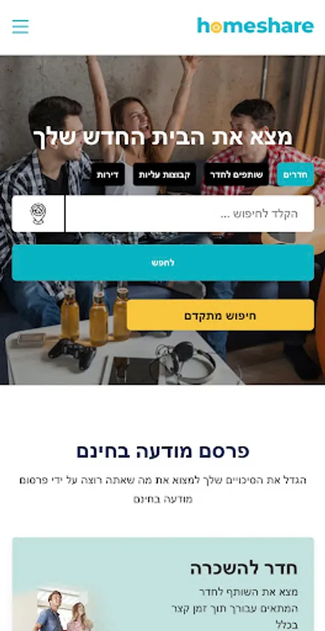 Homeshare was set up by two olim from England who came across the difficulties of finding an apartment to rent in Israel and at the same time discovered the joys of sharing an apartment with the right people. They embarked on a journey of creating a platform that would save people time and effort in their search for a room, roommate or apartment.