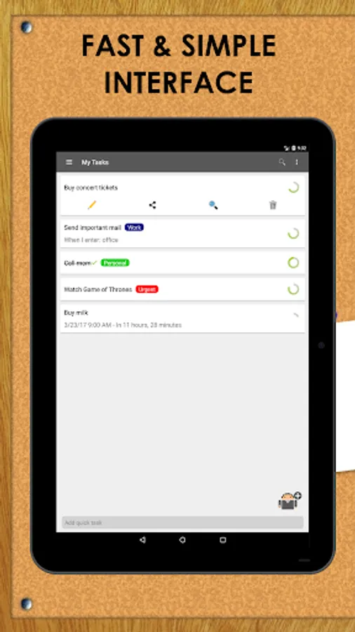 Super-fast interface - Create tasks quickly from anywhere in your phone or tablet.