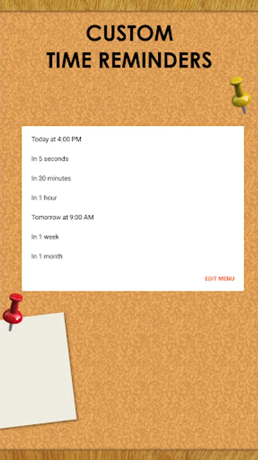 such as: "Tomorrow at 9:00am", "In 2 weeks", "When I leave home", "When I enter the office".