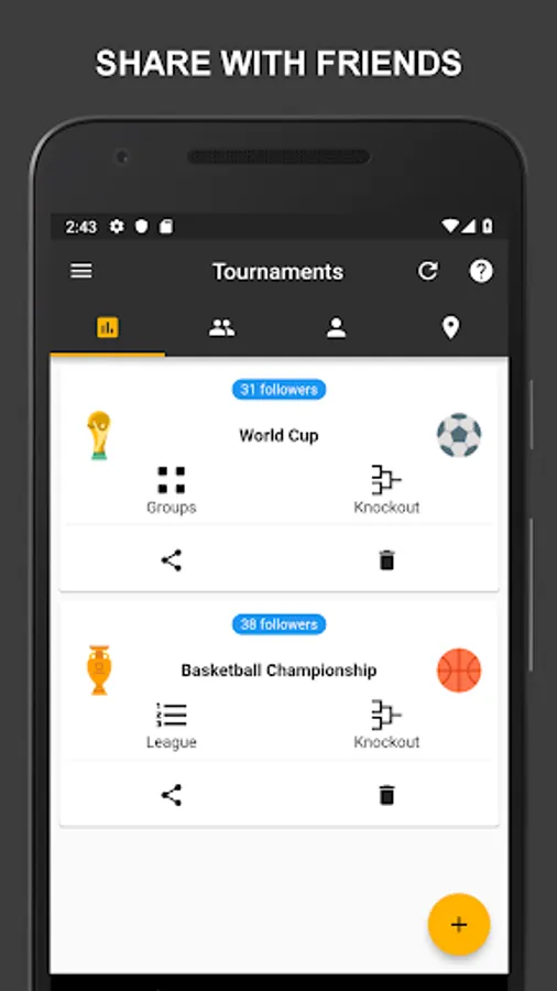 With Winner you can set your tournament followers as admins. Admins can also update match results and help you manage your tournament easily.