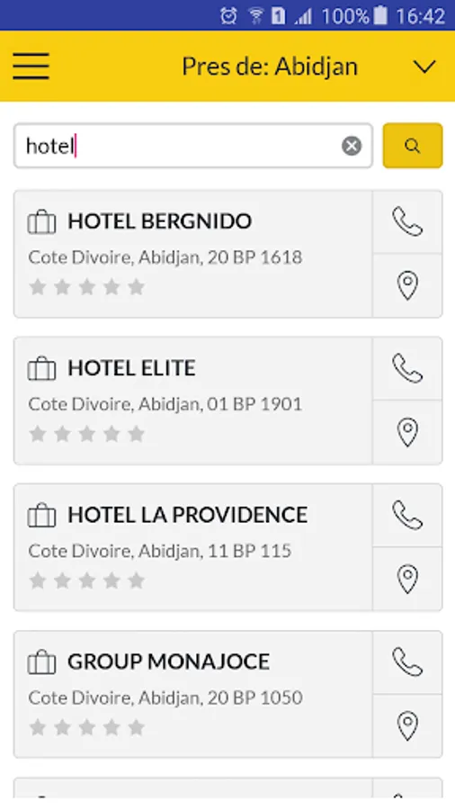 Public or private company, find the physical and digital addresses as well as the telephone contacts of companies near you, Abidjan and everywhere in Ivory Coast with annuaireci.com, the directory of professionals in Ivory Coast.