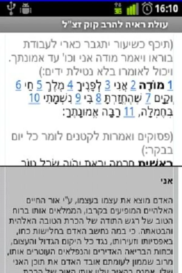 שימו לב: הסידור עם עברית מנוקדת ולכן הסידור לא עובד על גרסאות אנדרואיד ישנות אלא אם כן הפלאפון נרכש בארץ.