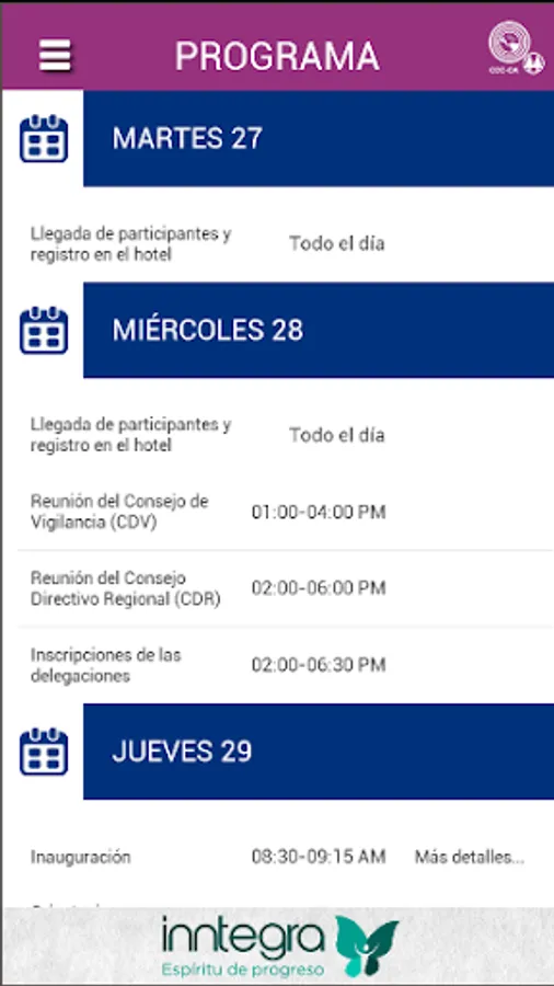 With this applications you can have knowledge of all the events carried out by the CCC-CA, and be able to see: