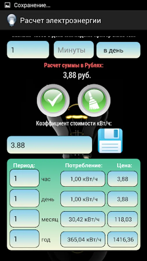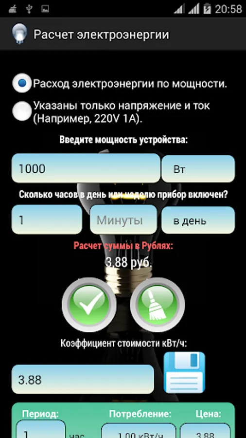 The program will help to calculate electricity consumption and the cost of operating electrical appliances.
