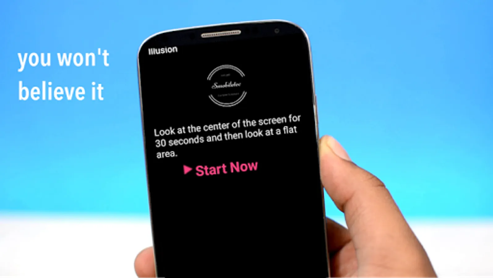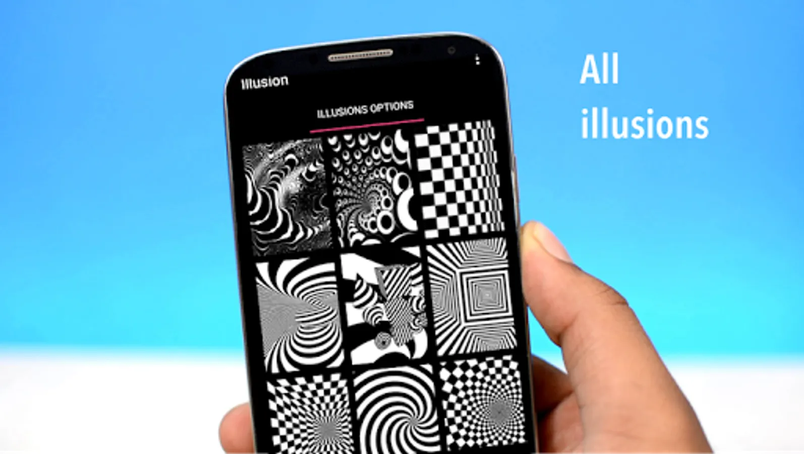 There are a total of 27 illusions. Includes Shape, Linear and Color illusion. First you have to choose one of these. Then follow your chosen illusions for 30 seconds and never move your eyes.
