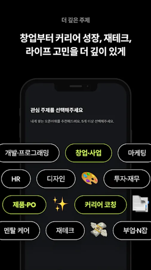 From start-up, start-up, marketing, sales, design, product, HR, etc. to life style such as IP creation, financial technology, mental care, etc., we will match you with a professional professional to consult your concerns through 1:1 video call.
