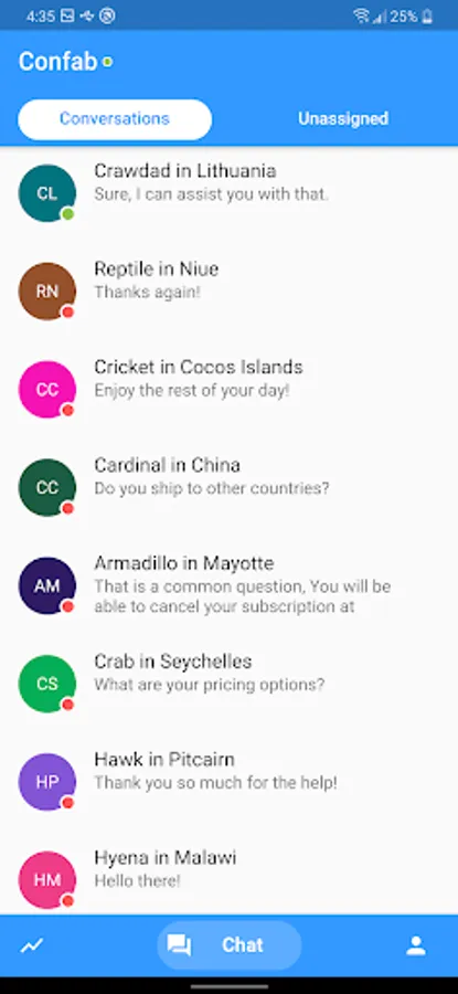 Confab live-chat is the mobile companion chat software for business owners that enables them to continue chatting with their users.