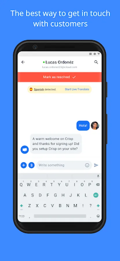 Add our live chat to your website and talk to your customers real-time. Our chatbox is customizable and multilingual to adapt to your store. With MagicType, reply faster to your users by seeing what they’re writing in real-time. Plus, with GIF, smileys, and file sharing, live chat has never had so much flavor. You can even integrate Crisp with other channels, such as Facebook Messenger, Telegram, SMS and email.