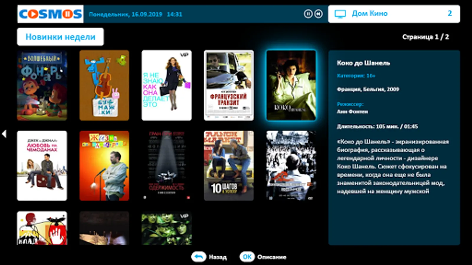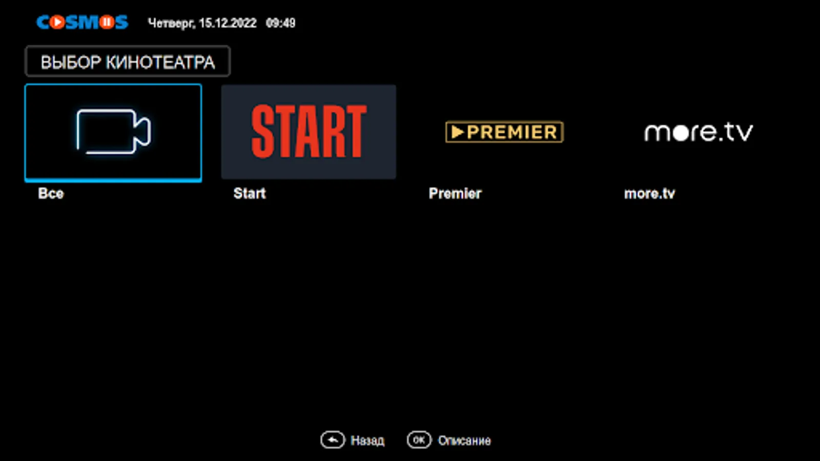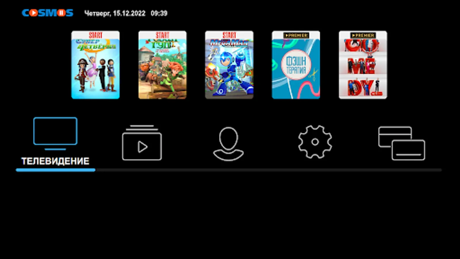 The COSMOS TV application is a service for watching TV and online cinemas (TV version).