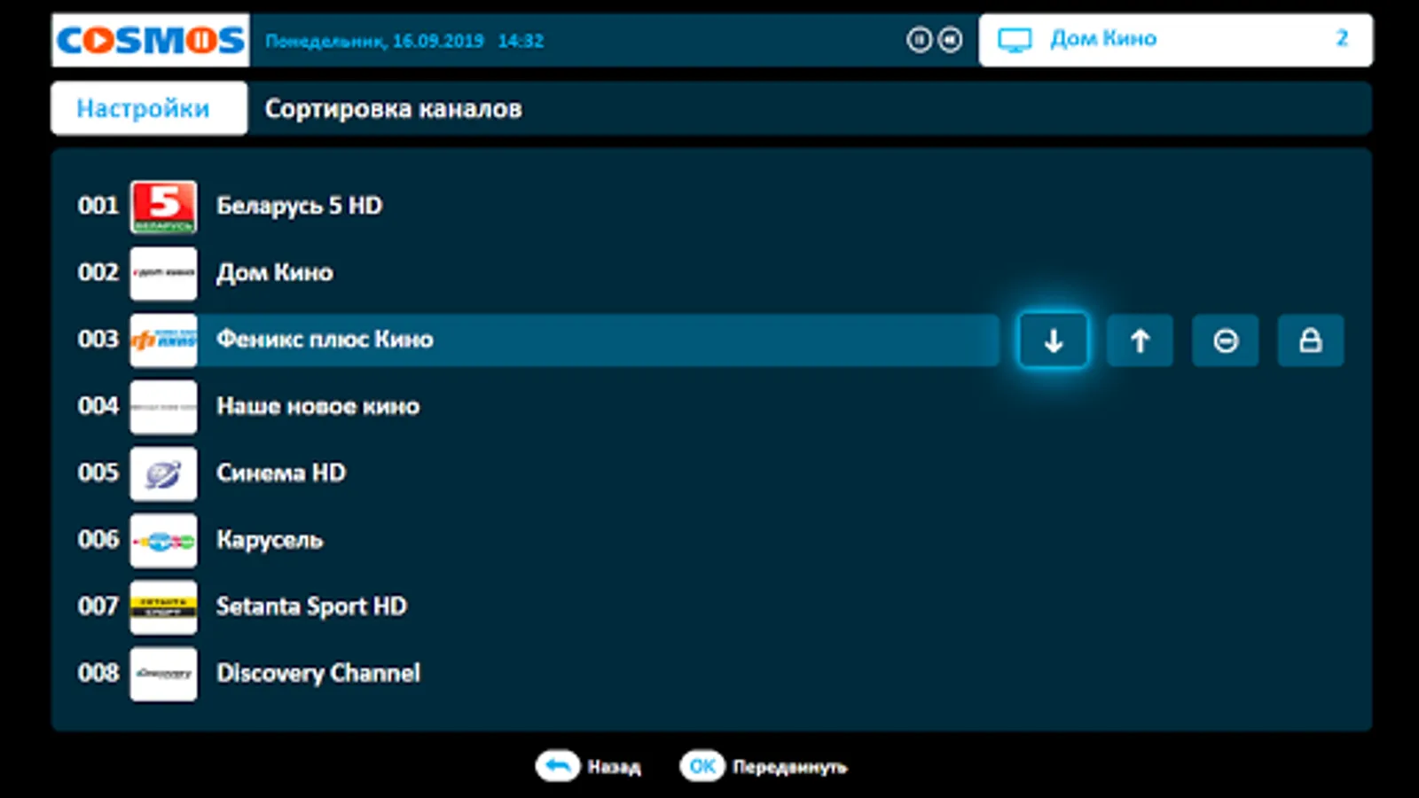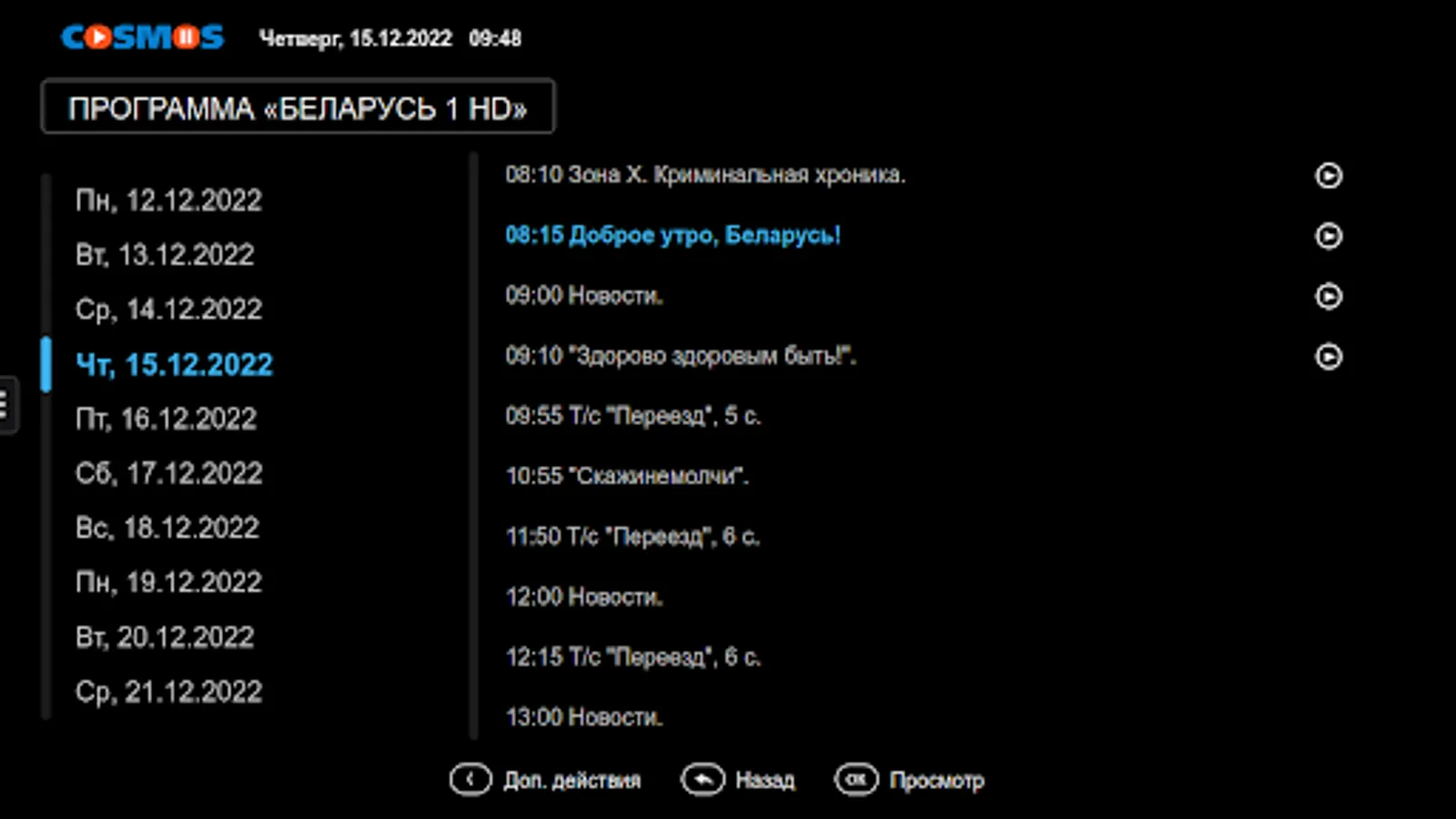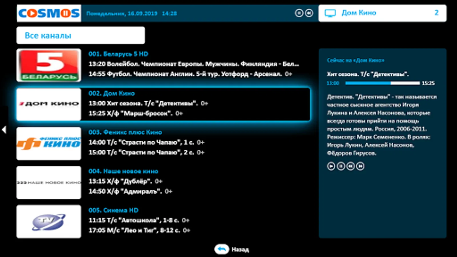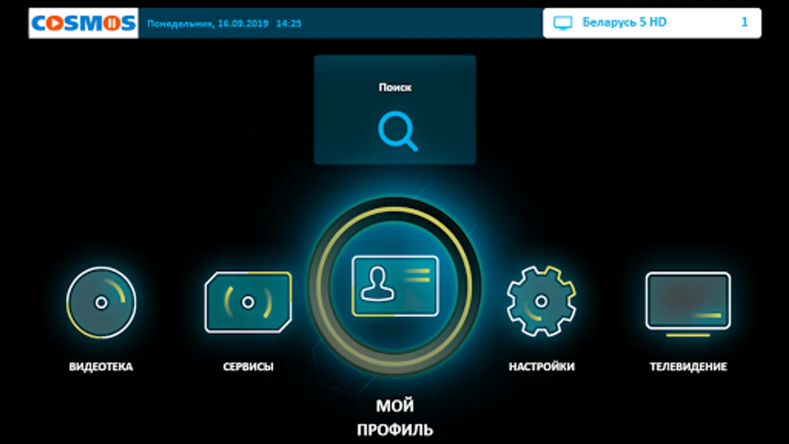 The COSMOS TV application is a service for watching TV and online cinemas (TV version).