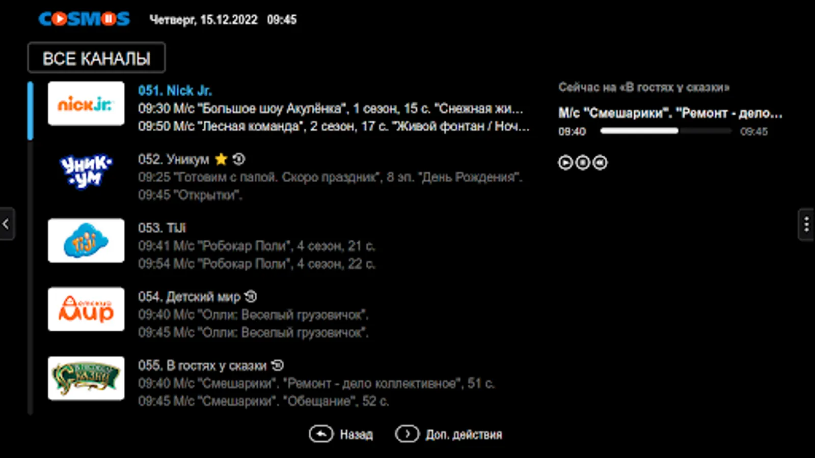 Children's channels: Mult, CTC Kids, Multilandia, TiJi;