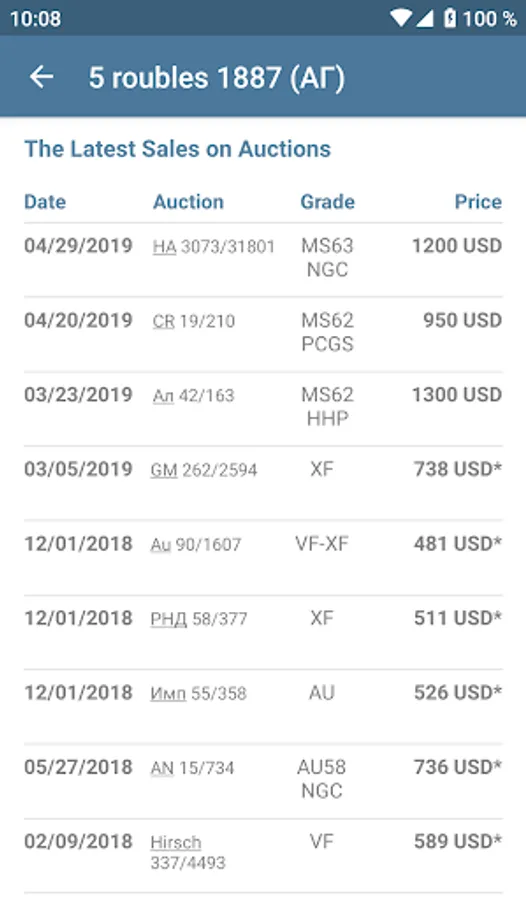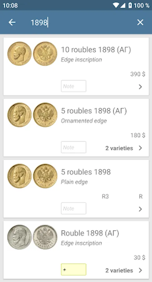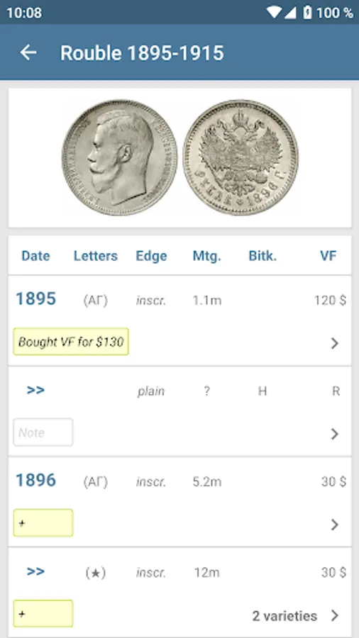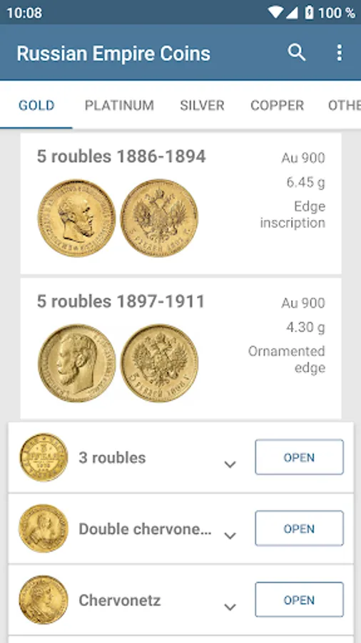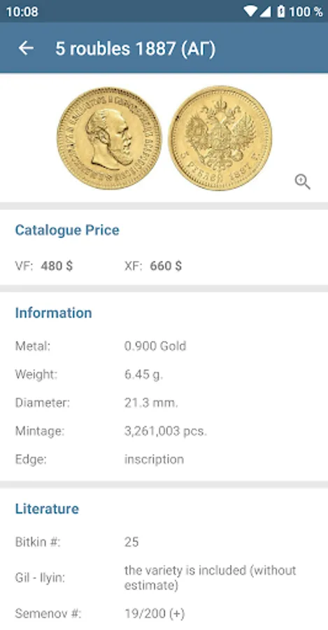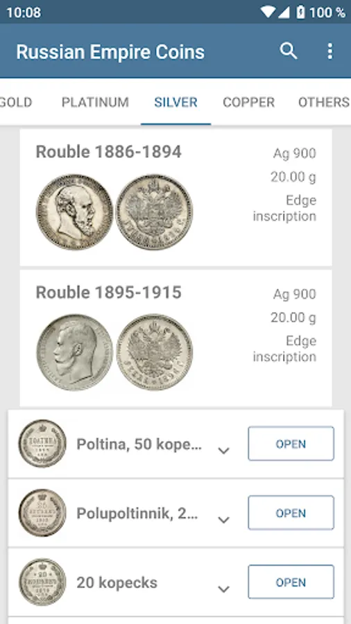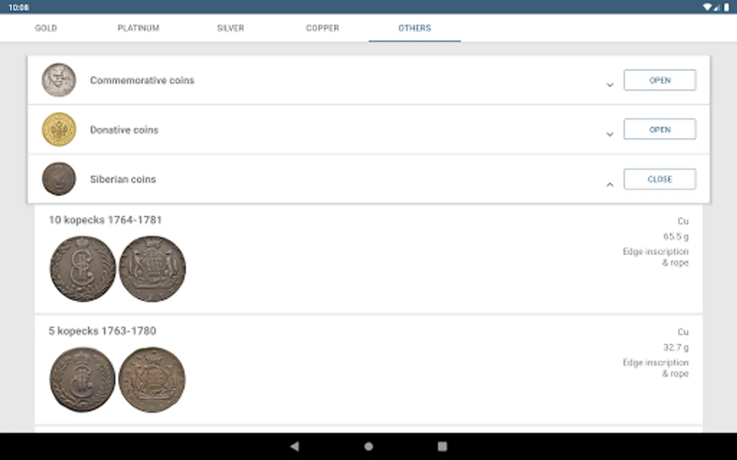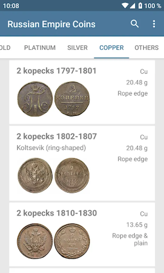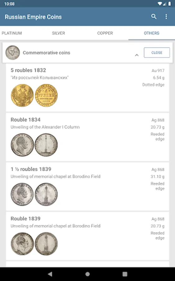 The most complete mobile application that contains descriptions and prices of the Imperial Russian Coins.
