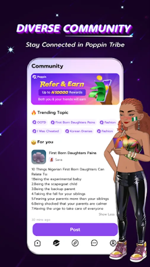 Poppin, the social app that lets you express yourself like never before! In Poppin, you can create a personalized avatar that looks just like you and use it to connect with friends and family in a whole new way.