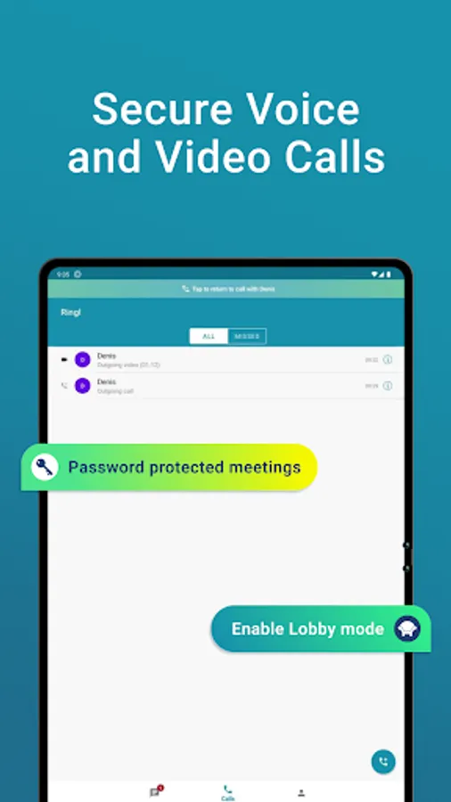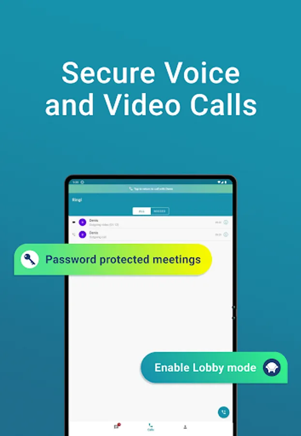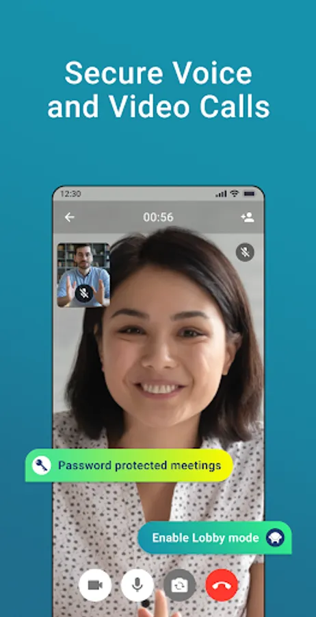 - Secure free high-quality voice and video calls with no time limit.